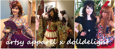 SacAnime 2013 was the first time we ever met Cyril Lumboy-- sweet, smart, professional and cute as a button! The fashion show took place the Friday of the convention where many indie J-Fashion designers competed-- the winning collection earning a free booth in Artist Alley at SacAnime Summer 2013! Although Dolldelight didn't compete, Lumboy was a special fashion guest for the show. Jenny and I rocked the kimono-inspired ensembles: the Koi Kimono (Jenny) and Wind Symphony (myself)!